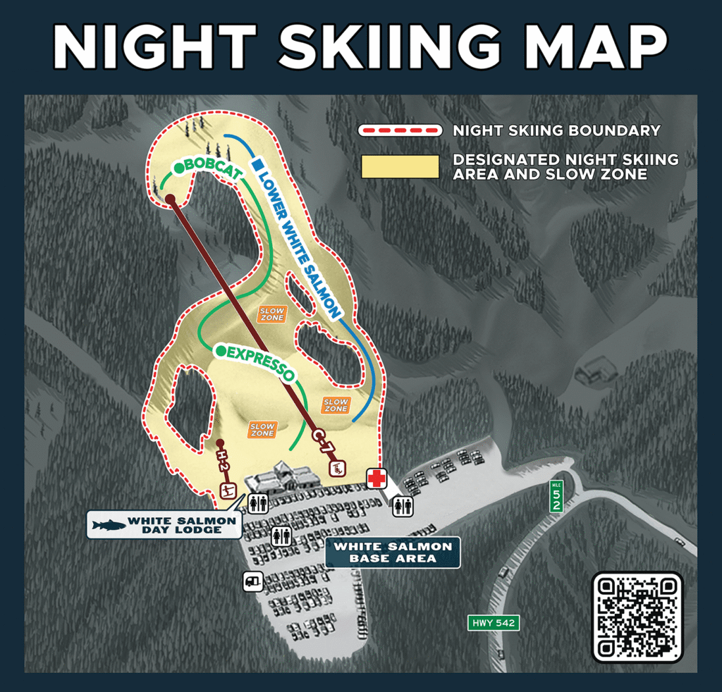 The White Salmon Day Lodge & services will be open through 8:30 pm this Friday and Saturday for Night Skiing!