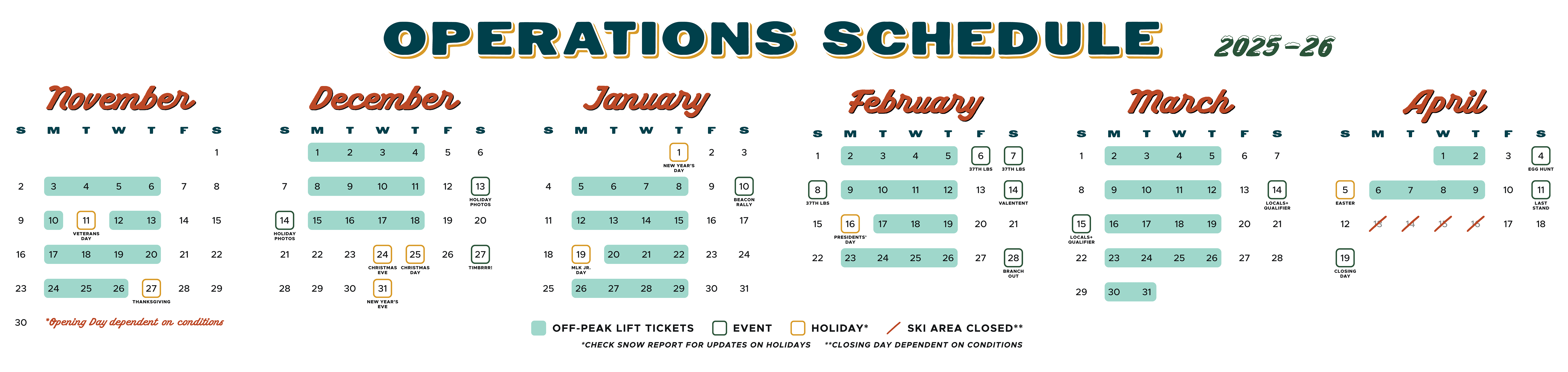 View Base Areas operation schedule info on our Operations Schedule page.